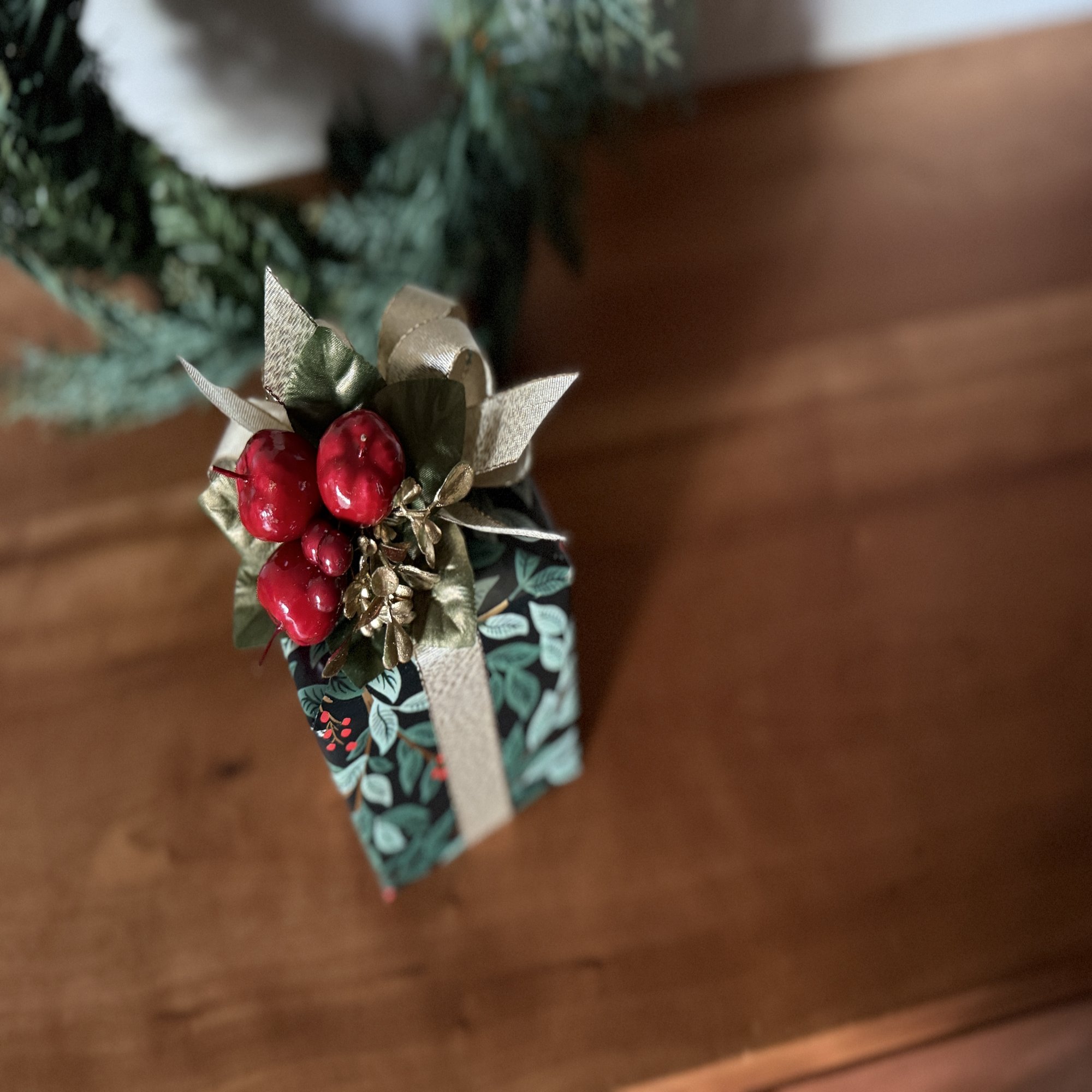 包装紙とリボンとオーナメントの世界観がぴたりと重なって、